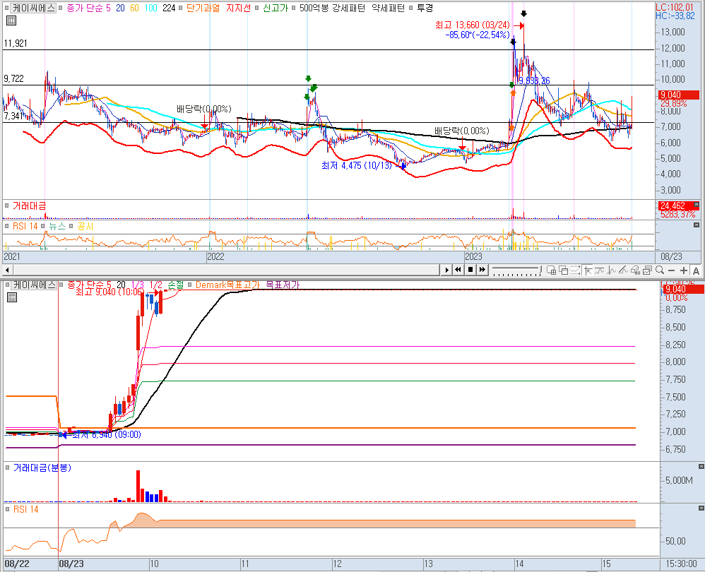 케이씨에스는 skt와 공동 개발에 성공한 양자암호칩을 출시한 적이 있습니다. 역시 5월경 큰 봉우리 하나 세워두었습니다. 시총은 1085억이며 32.9% 가 유통물량입니다. 오늘 거래대금 245억이 들어왔습니다.