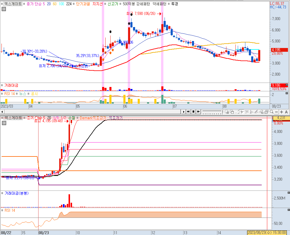 엑스게이트는 skt와 양자암호통신 기반 vpn 기술을 개발한 적 있어 5월에 한번 시세를 크게 냈었습니다. 시총 1194억, 유통시총은 290억밖에 되지 않습니다. 오늘 거래대금 90억이 돌았습니다.
