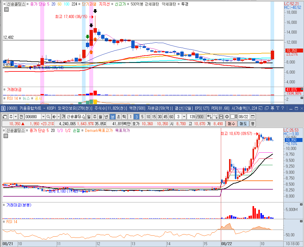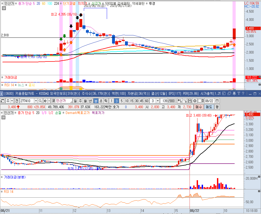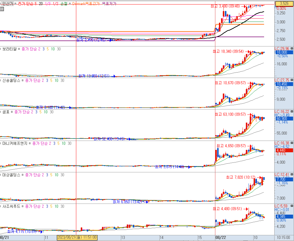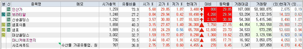 글을 적고 있는 사이 인산가, 보라티알, 신송홀딩스까지 세종목이 상한가를 가버립니다. 이대로라면 내일도 기대해 볼 만하겠습니다.